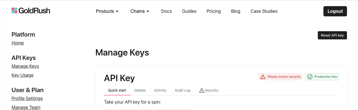 3. Sign in to the GoldRush dashboard and access your API key
